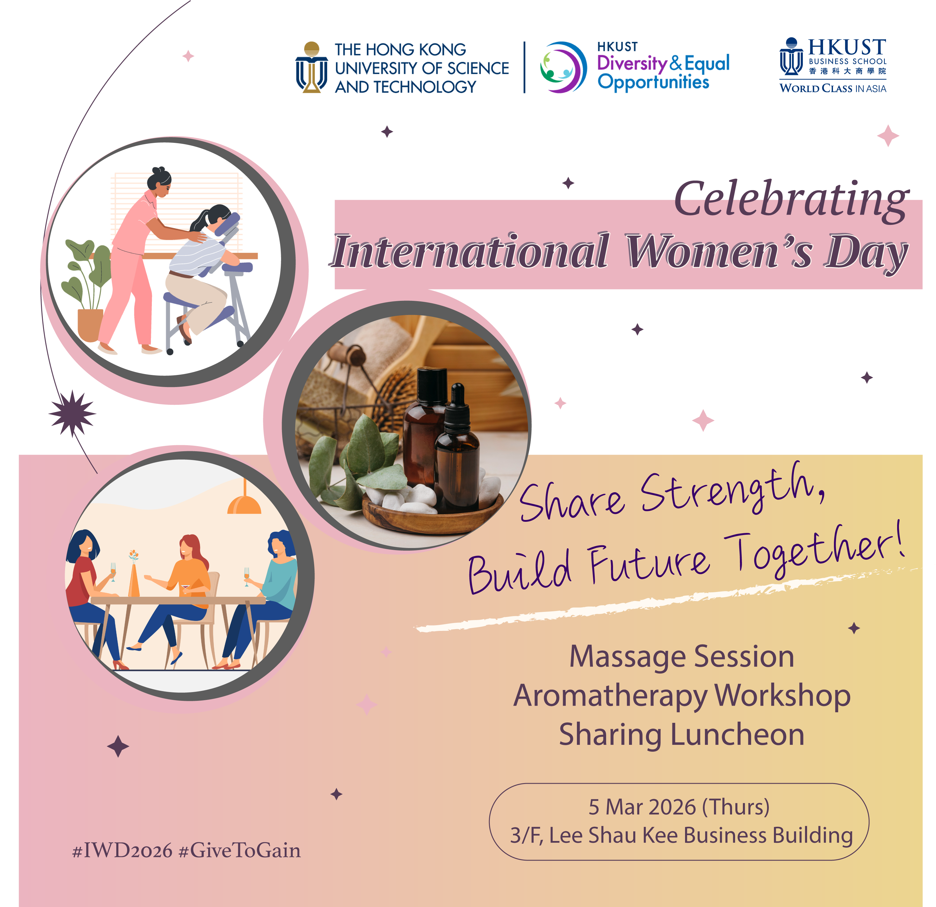 To celebrate International Women’s Day 2026, especially with the theme ‘Give to Gain’ this year, we are excited to unveil a series of activities for our colleagues. Through our Aromatherapy Workshop, Massage Session, and Sharing Luncheon, we hope to offer some well-being supports. Join Us, together we celebrate the day, and promote the supporting culture in workplace!